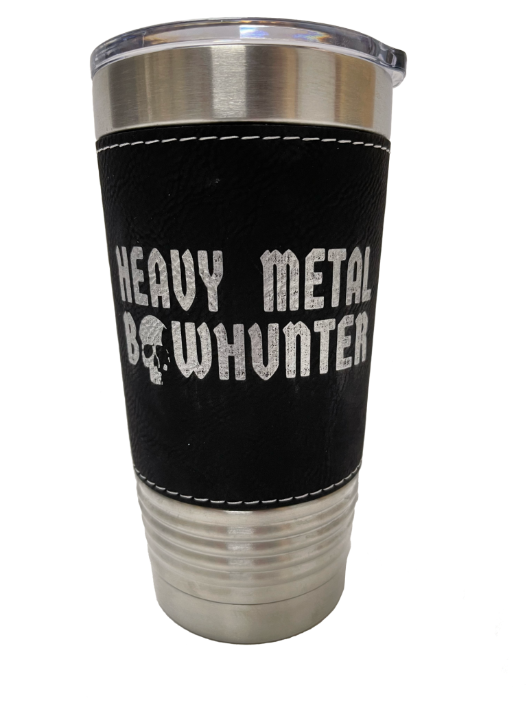 Hell Bent, Hell Bent for Leather! Gotta love Judas Priest. Anyway, this distressed leather chalice is laser engraved with the Rob Halford approved Heavy Metal Bowhunter logo. While we are not scientists, we're pretty sure this Polar Camel goblet will keep your elixir of choice icy cold or fiery hot for hours and hours and hours.